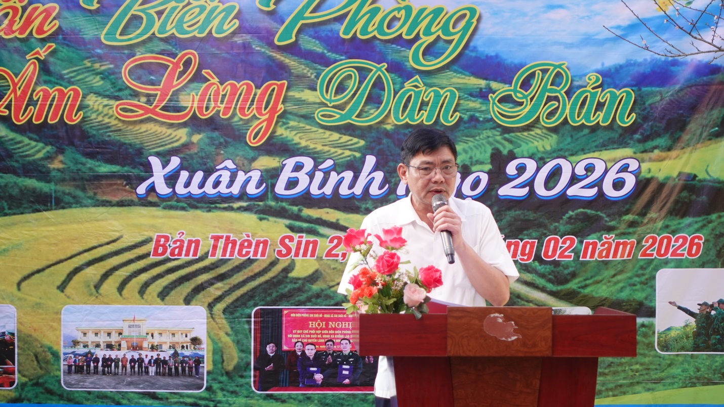 Phát biểu tại chương trình, đồng chí Lê Đức Dục - Trưởng Ban Tuyên giáo và Dân vận Tỉnh ủy ghi nhận, biểu dương những kết quả mà cấp ủy, chính quyền địa phương, lực lượng BĐBP và nhân dân bản Thèn Sin 2 đã đạt được trong thời gian qua. Đồng chí nhấn mạnh: Chương trình "Xuân biên phòng ấm lòng dân bản" là hoạt động có ý nghĩa thiết thực, thể hiện sâu sắc công tác dân vận của Đảng, góp phần củng cố niềm tin của nhân dân đối với cấp ủy, chính quyền và lực lượng vũ trang.
