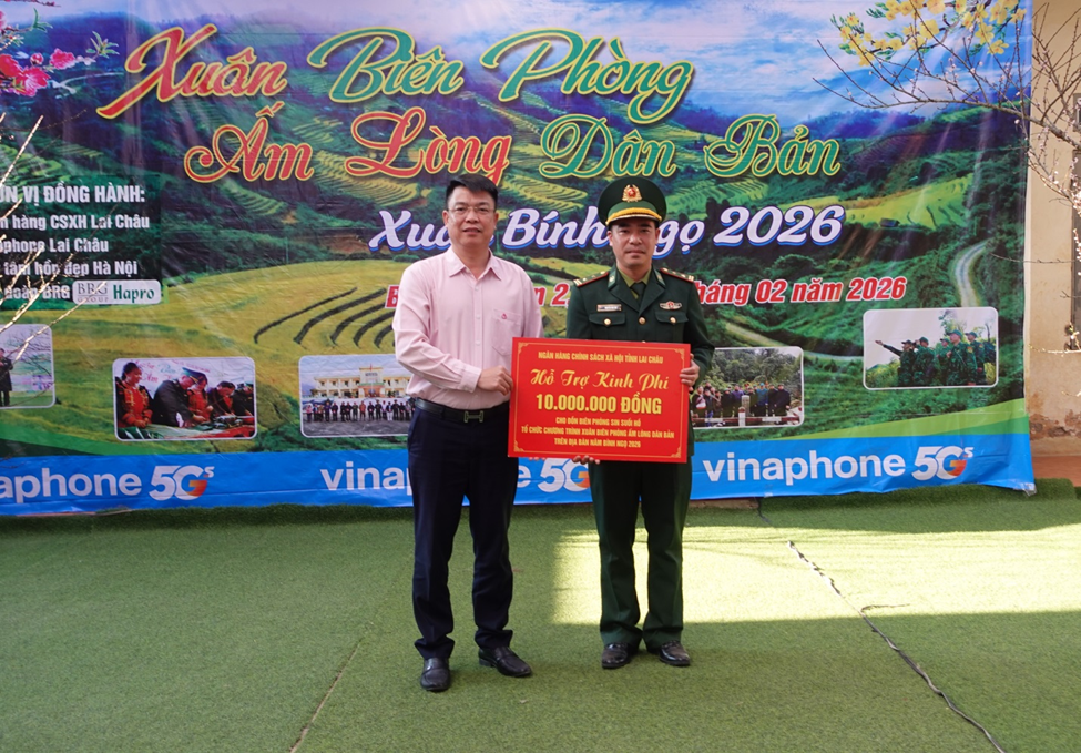 Đại diện Ngân hàng Chính sách xã hội tỉnh hỗ trợ kinh phí tổ chức chương trình "Xuân biên phòng ấm lòng dân bản" cho Đồn Biên phòng Sin Suối Hồ.