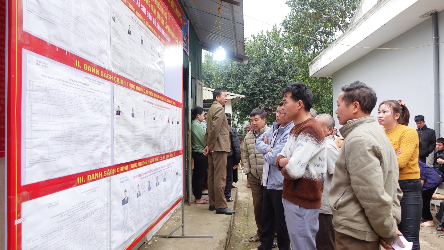 Tại các khu vực bỏ phiếu được trang trí cờ hoa, băng rôn, khẩu hiệu rực rỡ tạo nên không khí trang trọng, phấn khởi của ngày hội. Buổi lễ khai mạc diễn ra đúng theo quy trình, quy định, đảm bảo dân chủ, khách quan, an toàn. Cử tri trên địa bàn vui mừng, phấn khởi có mặt từ rất sớm tại các điểm bỏ phiếu để thực hiện quyền công dân. Ai cũng mong muốn được tự tay cầm những lá phiếu để bầu những đại biểu có đức, có tài, đại diện cho ý chí, nguyện vọng của Nhân dân vào Quốc hội và HĐND tỉnh, xã.