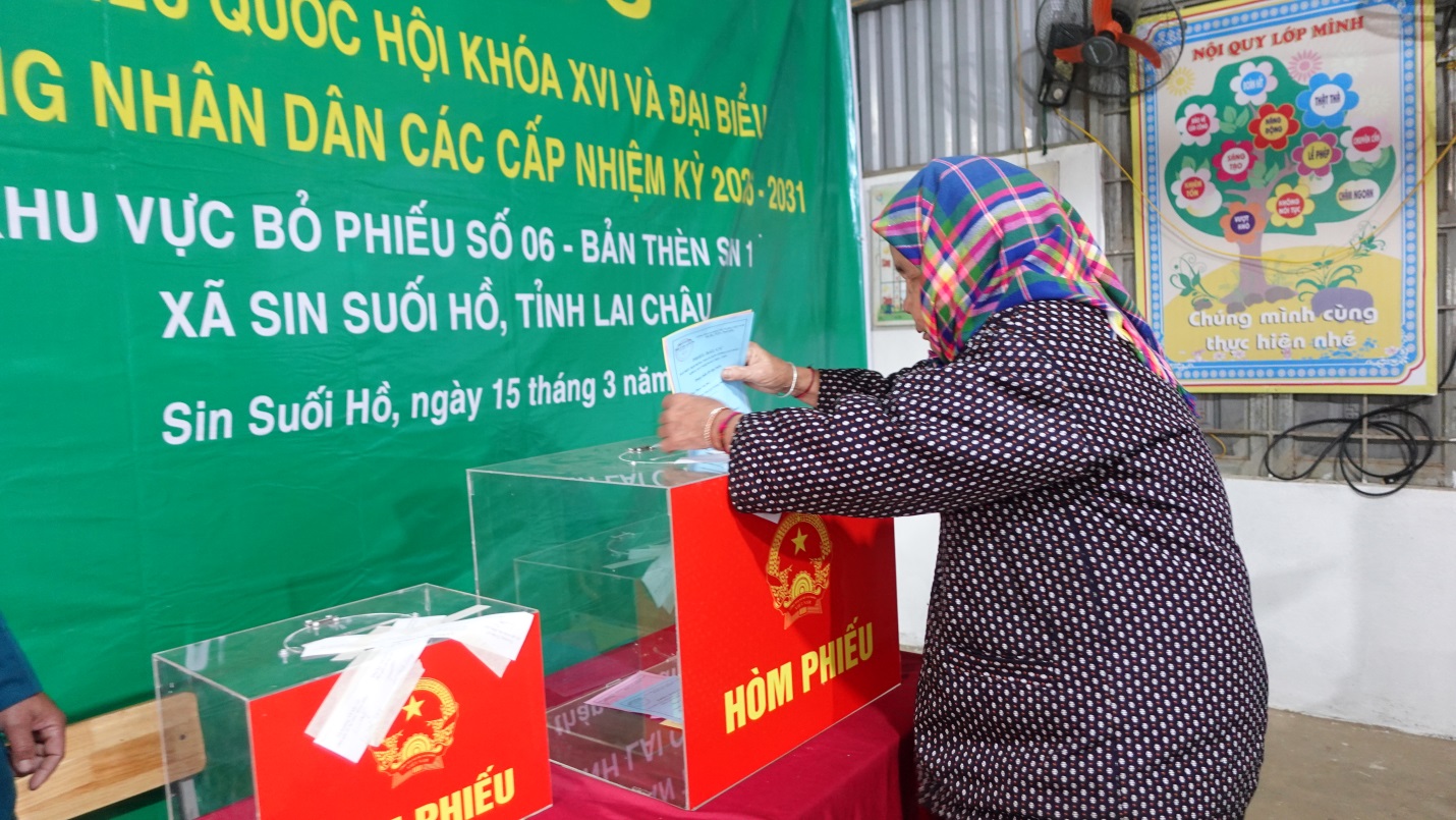 Theo báo cáo nhanh của Uỷ ban bầu cử xã, tính đến 9 giờ 00 phút ngày 15/3/2026 xã Sin Suối Hồ có 8144/9288 cử tri đã tham gia bỏ phiếu, đạt tỷ lệ 87,68 %. Trong đó 16/35 Tổ bầu cử, tỷ lệ cử tri đi bỏ phiếu đạt 100% gồm các Tổ: số 10 bản Dền Sung; số 24 bản Vàng Thẳm; số 25 bản Van Hồ 2; số 26 bản Sàng Mà Pho, số 28 bản San Dì; số 35 Đồn Biên Phòng, số 27 Bản Màu; số 32 Bản Mỏ; số 33 bản Ngài Trò; số 07 bản Thèn Sin 2; số 13 bản Sin Suối Hồ; số 12 bản Chí Sáng; số 11 bản Trung Hồ; số 9 bản Hoàng Liên Sơn 1; số 31 bản Co Muông, số 2 bản Sin Câu.
