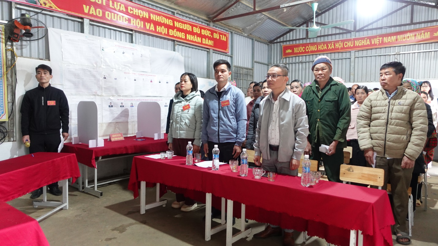 Các đồng chí Trịnh Văn Đoàn – Bí thư Đảng uỷ, Chủ tịch HĐND xã, Trưởng BCĐ bầu cử xã; Giàng A Vư – Phó Bí thư Thường trực Đảng uỷ, Phó Trưởng BCĐ bầu cử xã; Nguyễn Mạnh Cường – Phó Bí thư Đảng uỷ, Chủ tịch UBND xã, Phó Trưởng BCĐ bầu cử xã; các đồng chí Thường trực, Ban Thường vụ Đảng uỷ, HĐND, UBND, UBMTTQVN xã, các thành viên Ban Chỉ đạo, Uỷ ban bầu cử xã dự Lễ khai mạc và bỏ phiếu tại các Tổ bầu cử trên địa bàn xã.