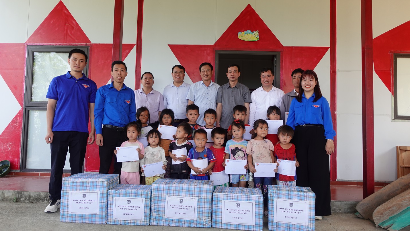 Trong khuôn khổ của Chương trình, Các đồng chí lãnh đạo và Ban Chấp hành Đoàn 3 đơn vị đã đến thăm, trao tặng 15 suất quà cho các cháu học sinh điểm Trường mầm non Hoàng Trù Văn (bản Chảng Phàng) và Tổ chức Lễ ký kết nghĩa giữa 03 đơn vị Đoàn.