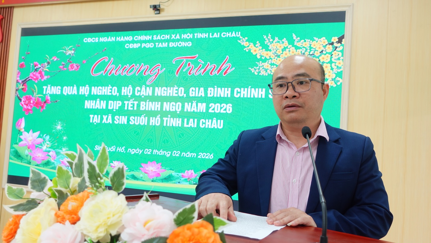 Nhân dịp đón xuân Bính Ngọ năm 2026, Sáng nay 2/2, Công đoàn bộ phận Phòng giao dịch (PGD) Ngân hàng CSXH Tam Đường phối hợp với UBND xã Sin Suối Hồ tặng quà tết cho các hộ nghèo, cận nghèo, gia đình chính sách trên địa bàn xã. Dự Chương trình có các đồng chí: Nguyễn Xuân Trường – Giám đốc PGD Ngân hàng CSXH Tam Đường; Phạm Thị Thu Hương – Chủ tịch Công đoàn bộ phận PGD Ngân hàng CSXH Tam Đường; Đinh Ngọc Cường – Uỷ viên BTV Đảng uỷ, Phó Chủ tịch UBND xã; đại diện UBMTTQ xã và các hộ nghèo được nhận quà.