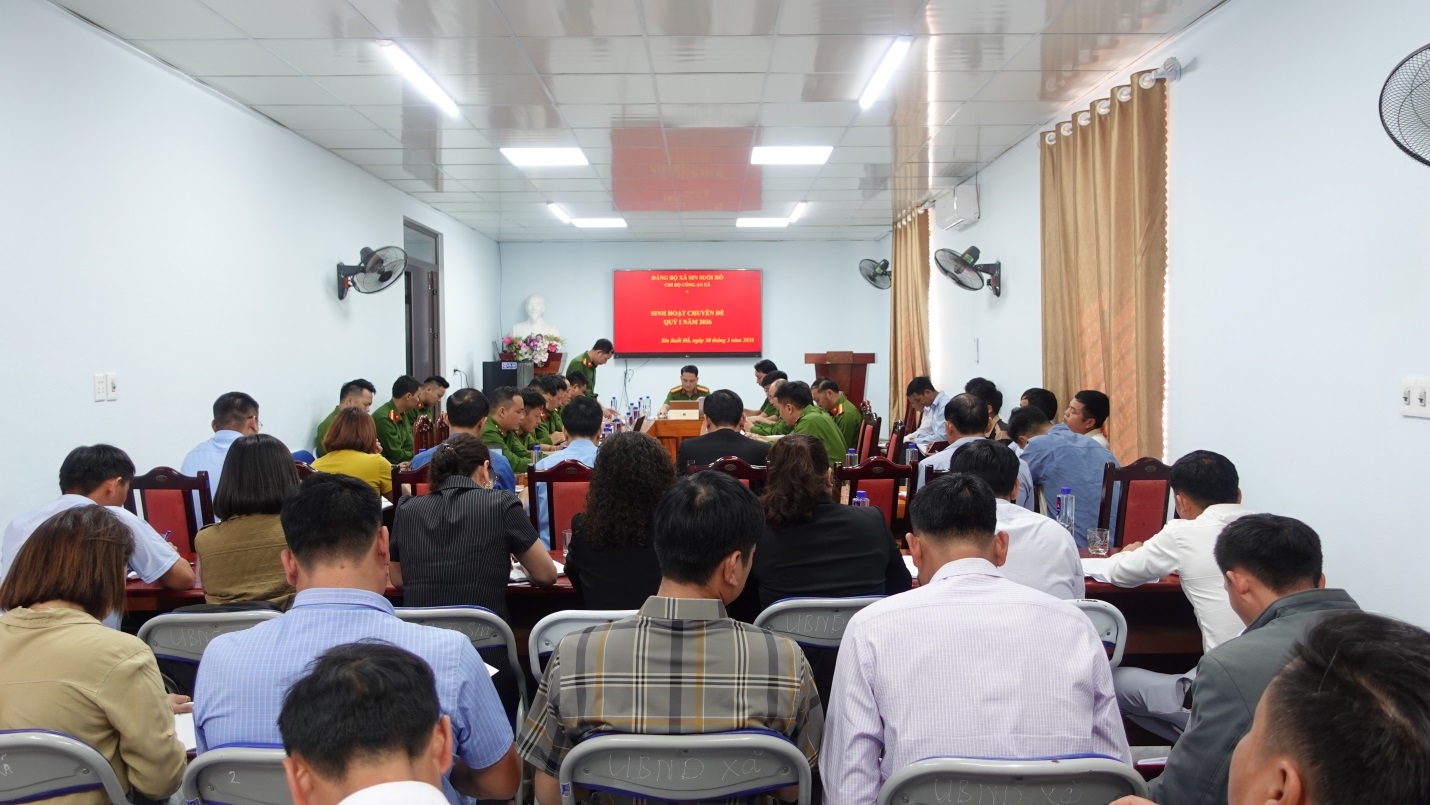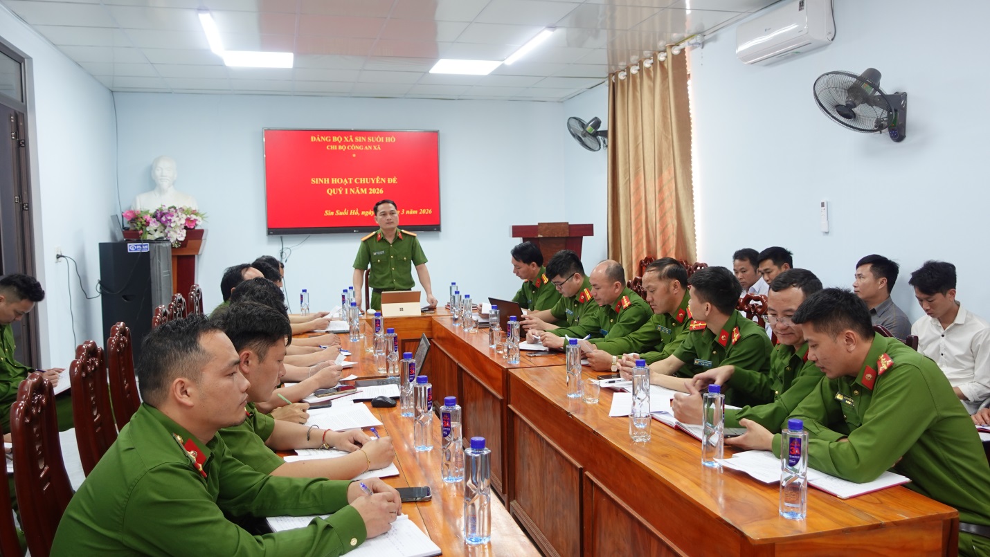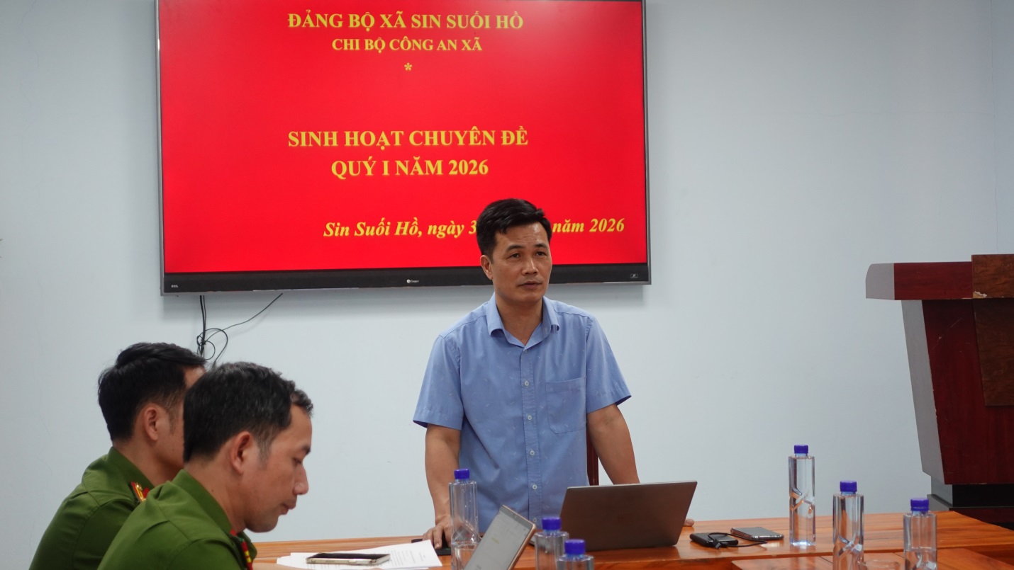 Quang cảnh sinh hoạt chuyên đề quý I năm 2026 của Chi bộ Công an xã.