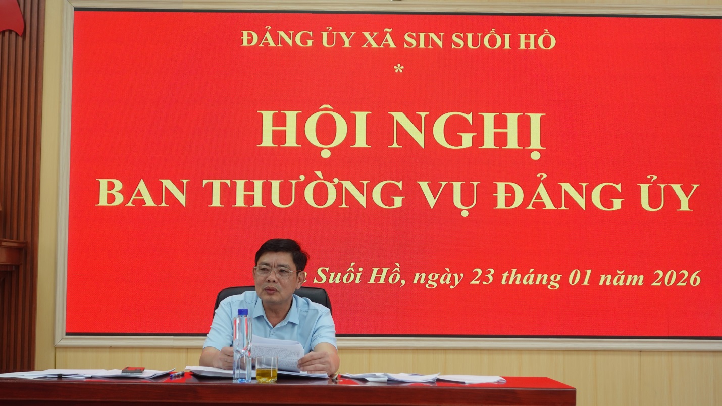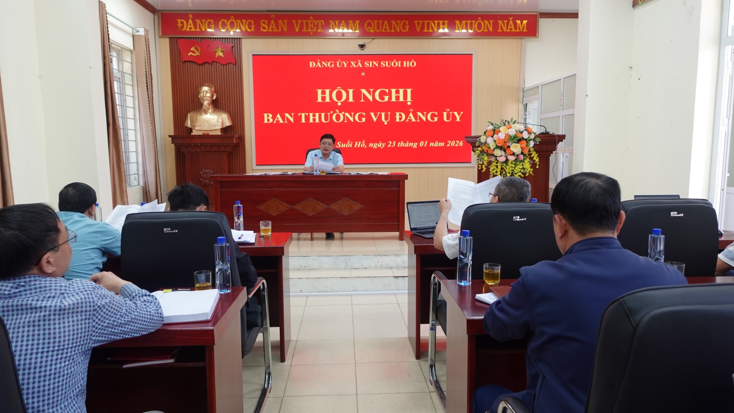 Hội nghị đã thông qua Dự thảo Quy định về tiêu chuẩn chức danh cán bộ thuộc diện Ban Thường vụ Đảng ủy quản lý. Dự thảo Quy định về phân cấp quản lý cán bộ và quy hoạch, bổ nhiệm, giới thiệu ứng cử, tạm đình chỉ công tác, cho thôi giữ chức vụ, từ chức, miễn nhiệm đối với cán bộ. Dự thảo Kế hoạch thực hiện Kết luận số 107 – KL/TW, ngày 24/12/2024 của Bộ Chính trị về tiếp tục tăng cường sự lãnh đạo của Đảng đối với công tác tiếp công dân và giải quyết khiếu nại, tố cáo, kiến nghị, phản ánh. Dự thảo kế hoạch thực hiện Chỉ thị số 03 – CT/TU, ngày 30/12/2025 của Ban Thường vụ Tỉnh ủy về tăng cường sự lãnh đạo của các cấp ủy đảng đối với công tác giải quyết các vụ việc, vụ án dân sự, hôn nhân và gia đình, kinh doanh, thương mại, lao động, vụ án hành chính và những việc khác theo quy định của pháp luật. Dự thảo Kế hoạch thực hiện Nghị quyết số 57-NQ/TW, ngày 22/12/2024 của Bộ Chính trị về đột phá phát triển khoa học, công nghệ, đổi mới, sáng tạo và chuyển đổi số quốc gia năm 2026. Dự thảo báo cáo tình hình thực hiện nhiệm vụ chính trị tháng 01, nhiệm vụ trọng tâm tháng 2 năm 2026. Dự thảo báo cáo tình hình triển khai thực hiện Đề án chuyển đổi số trong các cơ quan Đảng xã Sin Suối Hồ tháng 01 năm 2026, nhiệm vụ tháng 02 năm 2026. Tờ trình xin chủ trương ban hành Kế hoạch thực hiện Chương trình hành động số 05-CTr/TU, ngày 24/11/2025 của Ban Thường vụ Tỉnh ủy về thực hiện Nghị quyết số 71-NQ/TW, ngày 22/8/2025 của Bộ Chính trị về đột phá phát triển giáo dục và đào tạo.