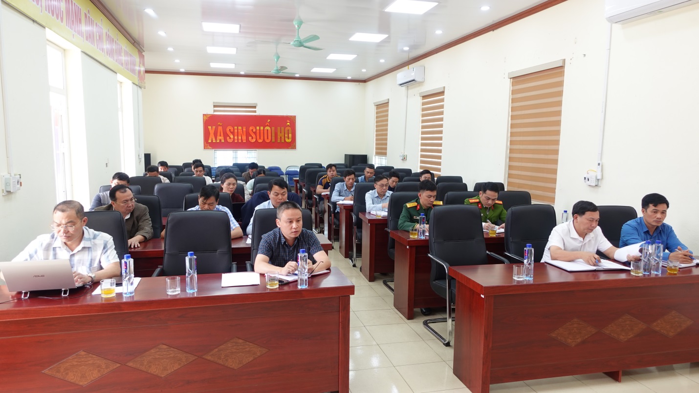 Tại hội nghị đã thông qua các nội dung triển khai như: Tiến độ công tác Bầu cử đại biểu Quốc hội khóa XVI và đại biểu Hội đồng nhân dân các cấp nhiệm kỳ 2026 – 2031. Theo đó, UBND xã phối hợp với Ủy ban Mặt trận Tổ quốc Việt Nam xã Sin Suối Hồ tổ chức Hội nghị hiệp thương lần thứ ba theo đúng trình tự, nội dung và thời gian quy định, 37 người đủ tiêu chuẩn được giới thiệu ứng cử HĐND xã khoá XXII nhiệm kỳ 2026 – 2031. Đã tổ chức 10 hội nghị lấy ý kiến cử tri nơi cư trú và nơi công tác đối với những người được giới thiệu ứng cử đại biểu Hội đồng nhân dân xã nhiệm kỳ 2026 - 2031. Đã lập và niêm yết danh sách cử tri tại 35 khu vực bỏ phiếu, số cử tri đến thời điểm hiện tại là 9.664 người. Hội nghị cũng thông qua lịch tiếp xúc cử tri và vận động bầu cử tại các điểm bầu cử.