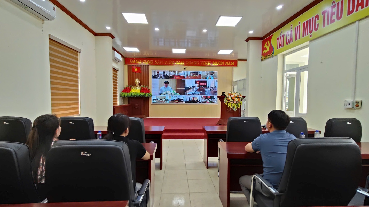 Hội nghị được tổ chức bằng hình thức trực tiếp kết hợp trực tuyến đến điểm cầu 38 xã, phường trên toàn tỉnh.