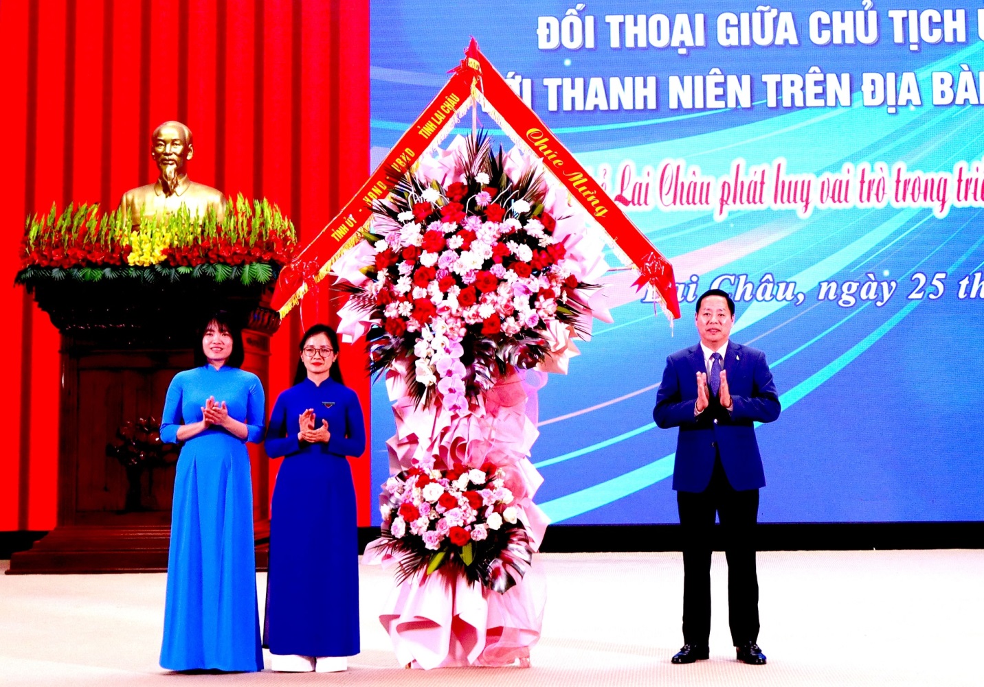 Đồng chí Hà Quang Trung – Phó Bí thư Tỉnh ủy, Chủ tịch UBND tỉnh tặng hoa Ban chấp hành Tỉnh đoàn nhân Ngày Kỷ niệm thành lập Đoàn Thanh niên Cộng sản Hồ Chí Minh.(Ảnh: Báo Lai Châu)