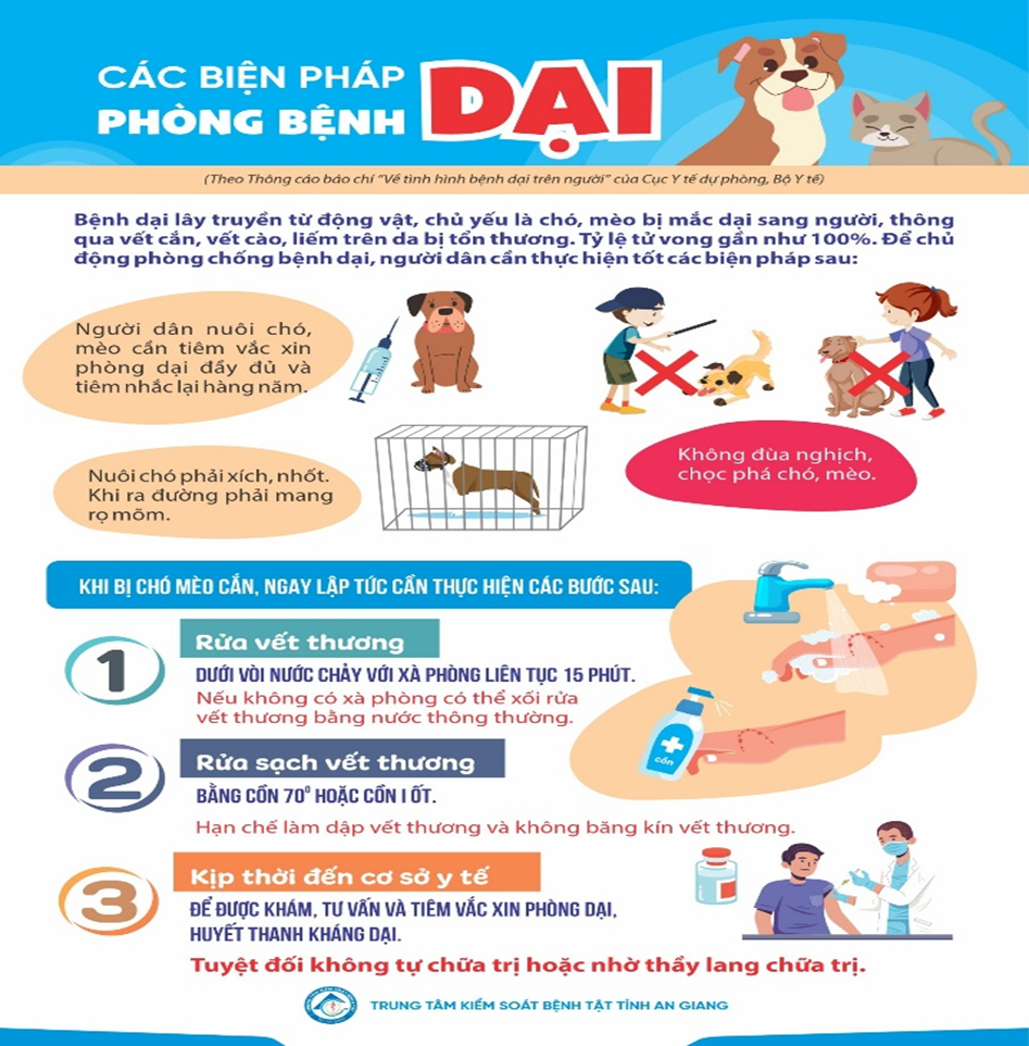 2.1 Phòng bằng vắc xin: Đây là biện pháp quan trọng bậc nhất. Cần thiết phải định kì tiêm phòng dại cho chó, mèo mỗi năm 1 lần, sau đó thường có những đợt tiêm phòng bổ xung để tạo được miễn dịch chủ động cho đàn chó, mèo chống lại sự xâm nhiễm của virus dại.