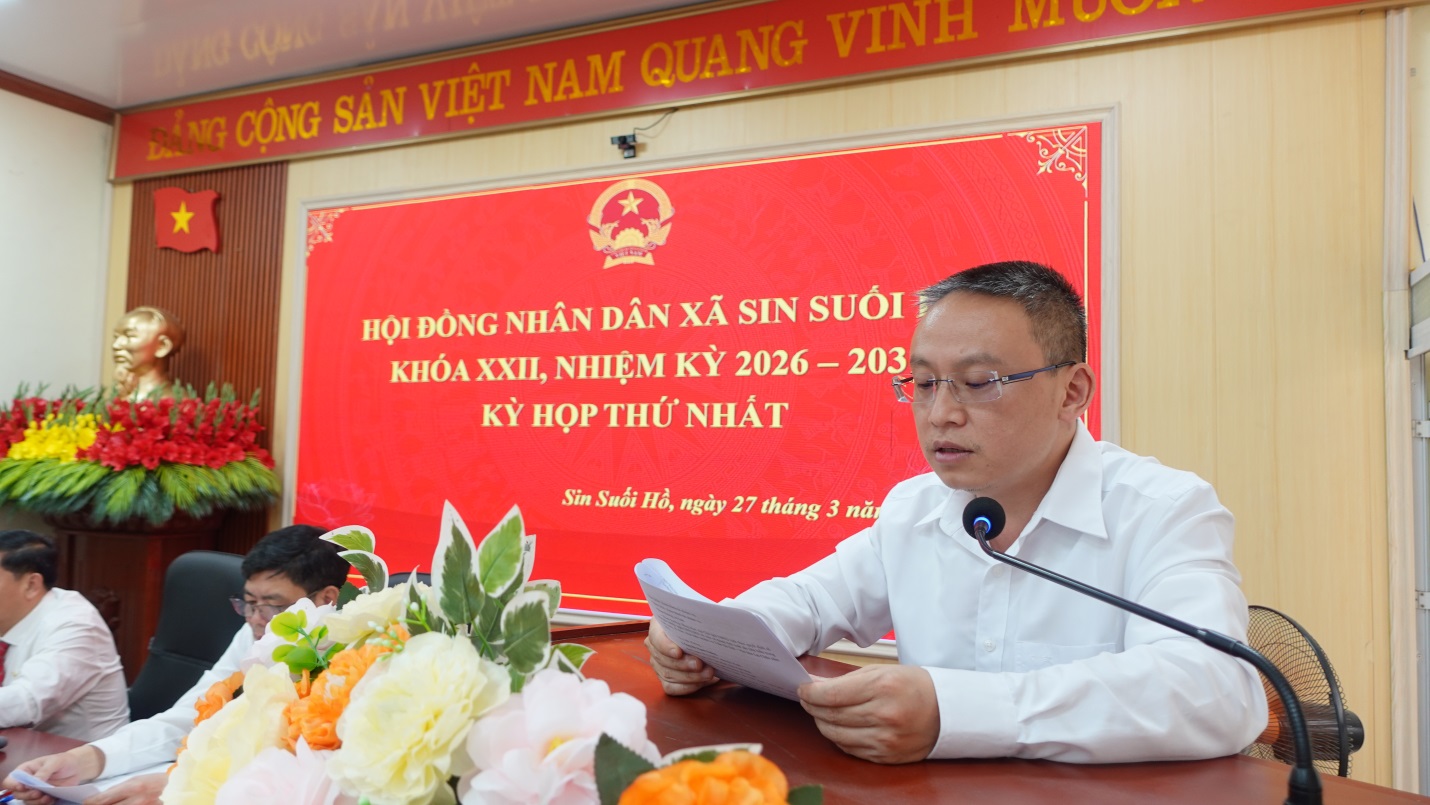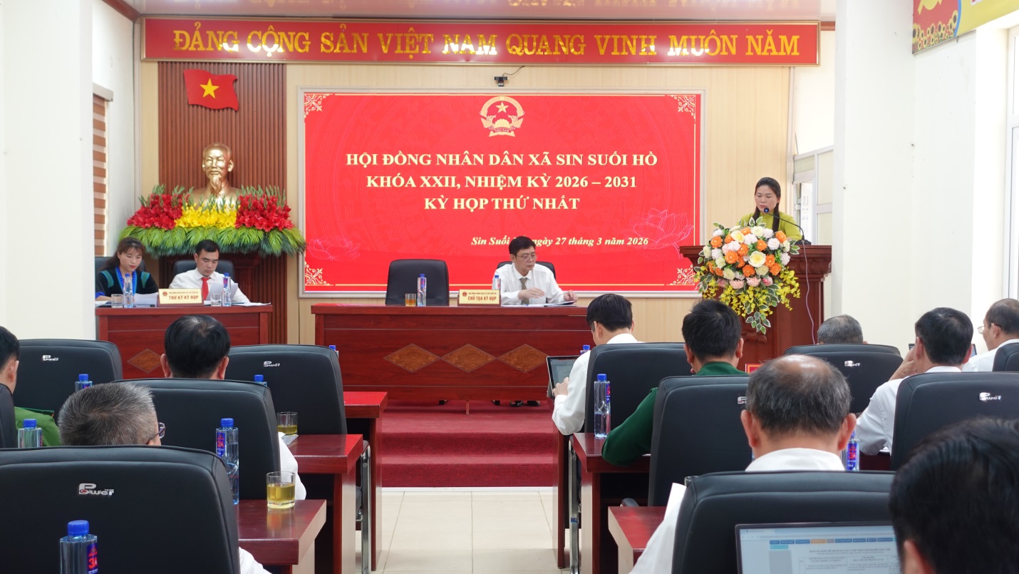 Chiều ngày 27/3, HĐND xã Sin Suối Hồ tổ chức kỳ họp thứ nhất, khóa XXII, nhiệm kỳ 2026 – 2031 để xem xét, quyết định các vấn đề thuộc thẩm quyền giải quyết của HĐND xã. Dự kỳ họp có các đồng chí: Nguyễn Xuân Thức – Phó Trưởng Ban kinh tế HĐND tỉnh; Vương Đức Lợi – Chủ tịch Hội Nông dân tỉnh. Đồng chí Đồng chí Trịnh Văn Đoàn – Bí thư Đảng ủy, Chủ tịch HĐND xã chủ trì kỳ họp.
