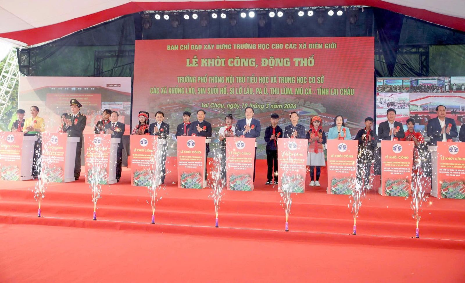 Báo cáo tại lễ khởi công, Thủ tướng Phạm Minh Chính nêu rõ: đây là sự kiện có ý nghĩa quan trọng, thể hiện sự quan tâm sâu sắc của Đảng, Nhà nước đối với sự nghiệp giáo dục vùng biên cương của Tổ quốc theo tinh thần “Cả nước hướng về biên cương, vì tương lai con em đồng bào các dân tộc”. Nhờ sự vào cuộc quyết liệt của cả hệ thống chính trị, đặc biệt là các địa phương, đã tổ chức khởi công đồng loạt 100 trường nội trú liên cấp vào ngày 09/11/2025; luỹ kế đến cuối năm 2025, đã khởi công xây dựng 108 trường; trong đó có 1 trường đã hoàn thành, đưa vào sử dụng ngày 31/01/2026 (Trường phổ thông nội trú tiểu học và trung học cơ sở Si Pa Pìn, xã Si Pa Pìn, tỉnh Điện Biên). Sau quá trình chuẩn bị kỹ lưỡng các điều kiện cần thiết của các bộ, ngành, địa phương liên quan, tại các tỉnh, thành phố trên cả nước tiếp tục tổ chức Lễ khởi công, động thổ đồng loạt 121 trường nội trú liên cấp tại các xã biên giới đất liền.