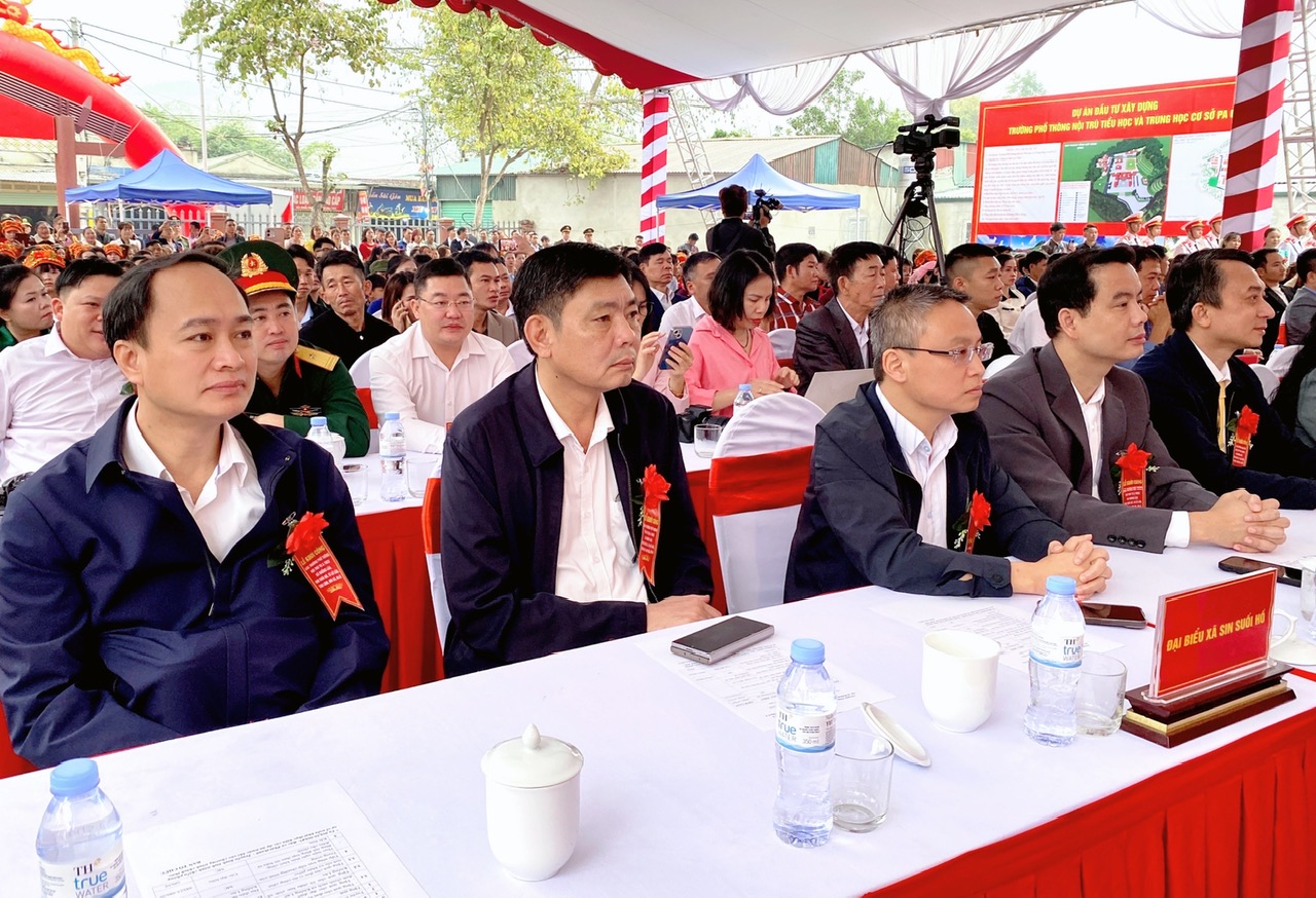 Đại biểu tỉnh có các đồng chí: Lê Minh Ngân - Ủy viên Ban Chấp hành Trung ương Đảng, Bí thư Tỉnh ủy; các đồng chí Thường trực Tỉnh uỷ, Ủy viên Ban Thường vụ Tỉnh ủy, Ủy viên Ban chấp hành đảng bộ tỉnh; lãnh đạo HĐND, UBND tỉnh, UBMTTQ tỉnh; lãnh đạo các sở, ban, ngành, lực lượng vũ trang tỉnh; cán bộ, giáo viên, học sinh, bà con nhân dân các xã: Khổng Lào, Sin Suối Hồ, Sì Lở Lầu, Pa Ủ, Thu Lũm, Mù Cả và đại diện nhà thầu thi công Tập đoàn Amacao.