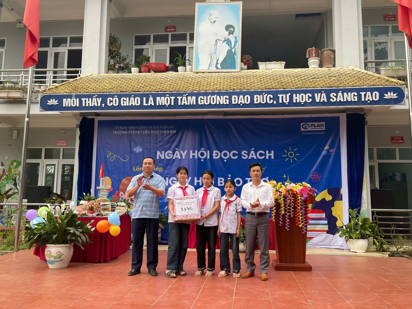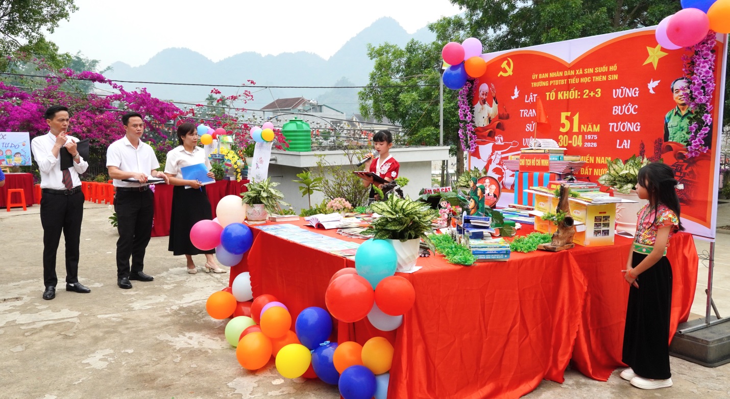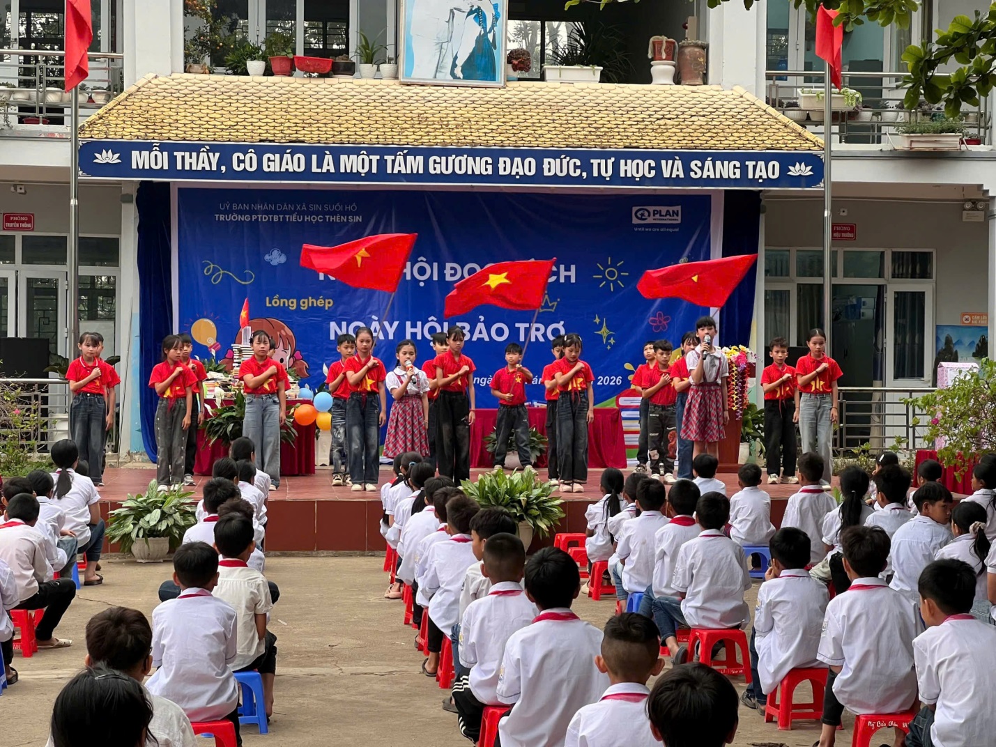 Hưởng ứng Ngày sách và Văn hóa đọc Việt Nam năm 2026, sáng ngày 16/4, Trường Phổ thông dân tộc bán trú (PTDTBT) Tiểu học Thèn Sin tổ chức Chương trình Ngày hội đọc sách lồng ghép Ngày hội bảo trợ năm 2026. Dự Chương trình có đồng chí Đinh Ngọc Cường - Ủy viên BTV Đảng ủy, Phó Chủ tịch UBND xã; các đồng chí lãnh đạo Ban xây dựng Đảng, Trung tâm Dịch vụ tổng hợp xã, đại diện dự án Plan Lai Châu; Banh Giám hiệu nhà trường, các thầy giáo, cô giáo, đại diện phụ huynh và học sinh toàn trường.