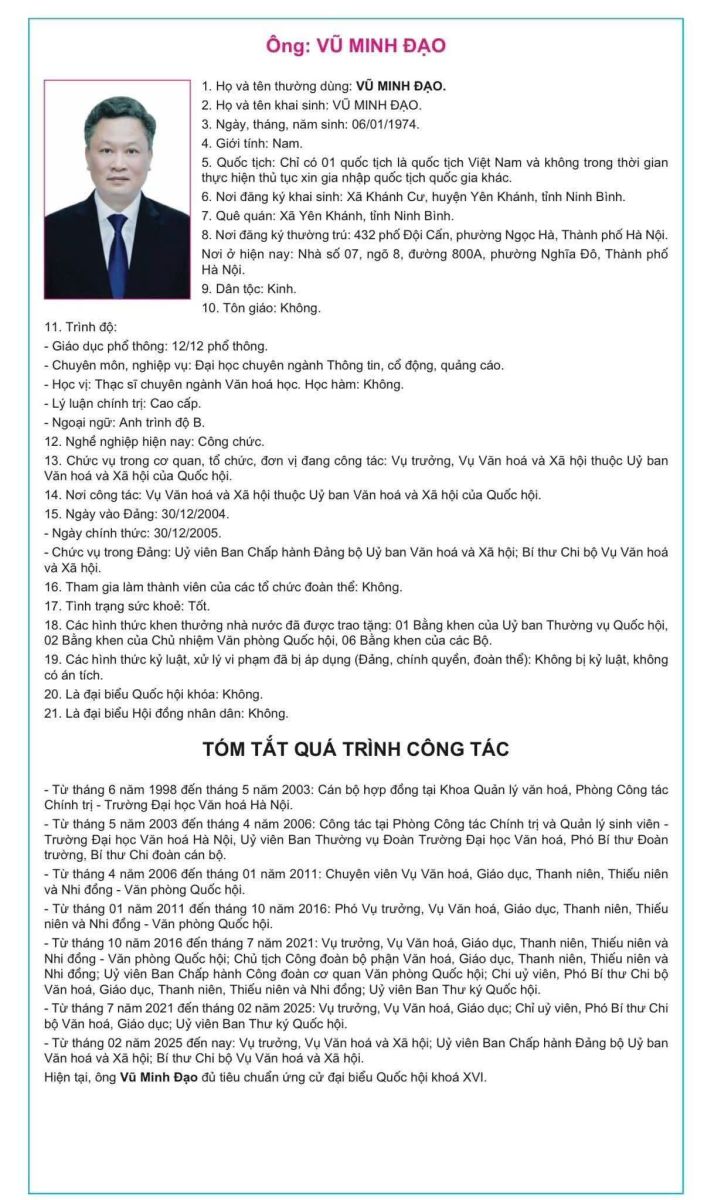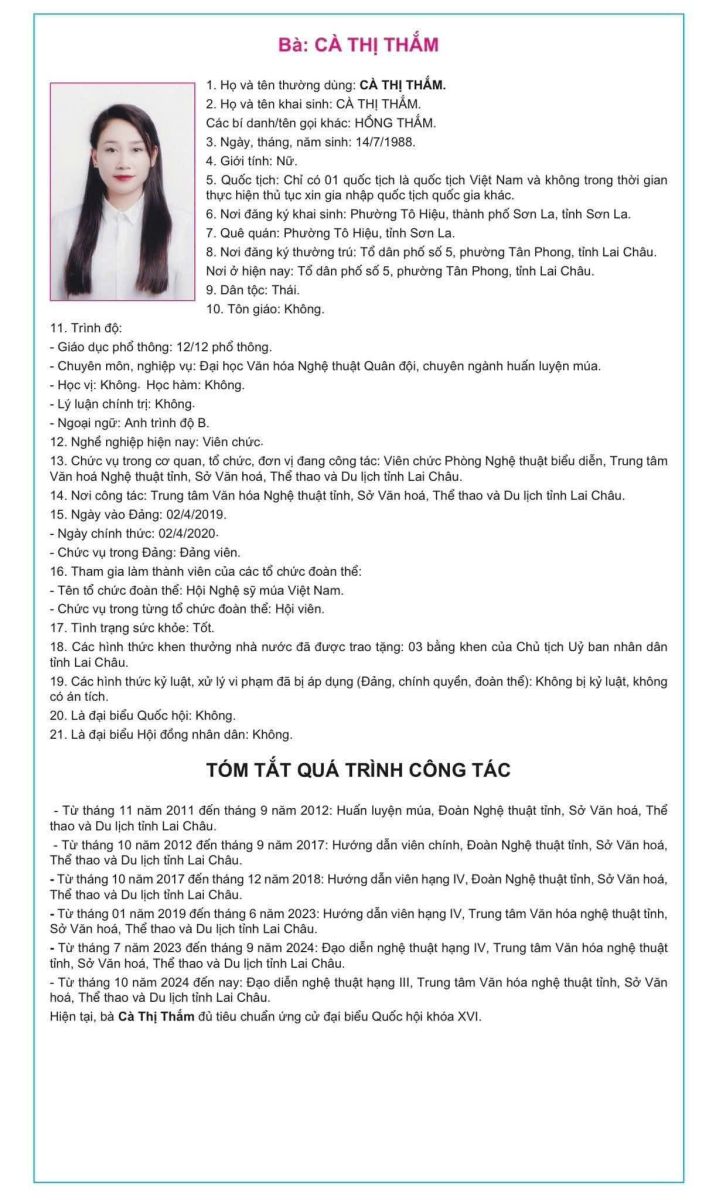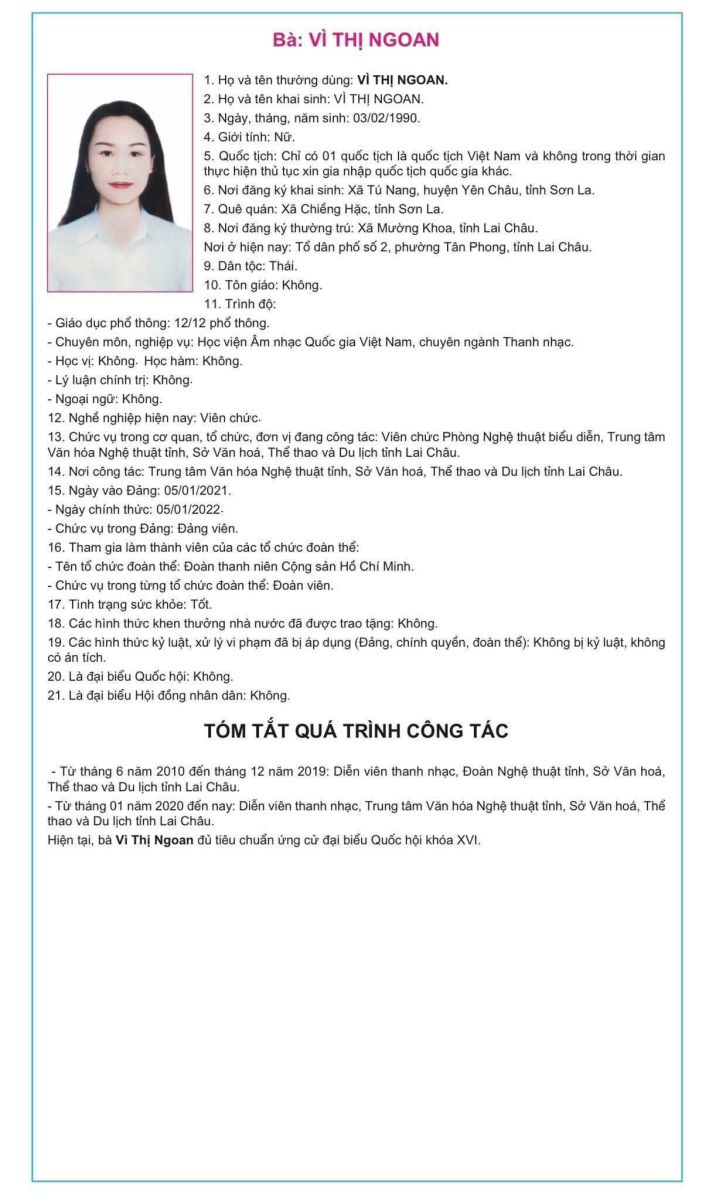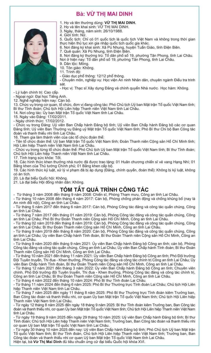 TIỂU SỬ TÓM TẮT CỦA NGƯỜI ỨNG CỬ ĐẠI BIỂU QUỐC HỘI KHÓA XVI ĐƠN VỊ BẦU CỬ SỐ 02 TỈNH LAI CHÂU