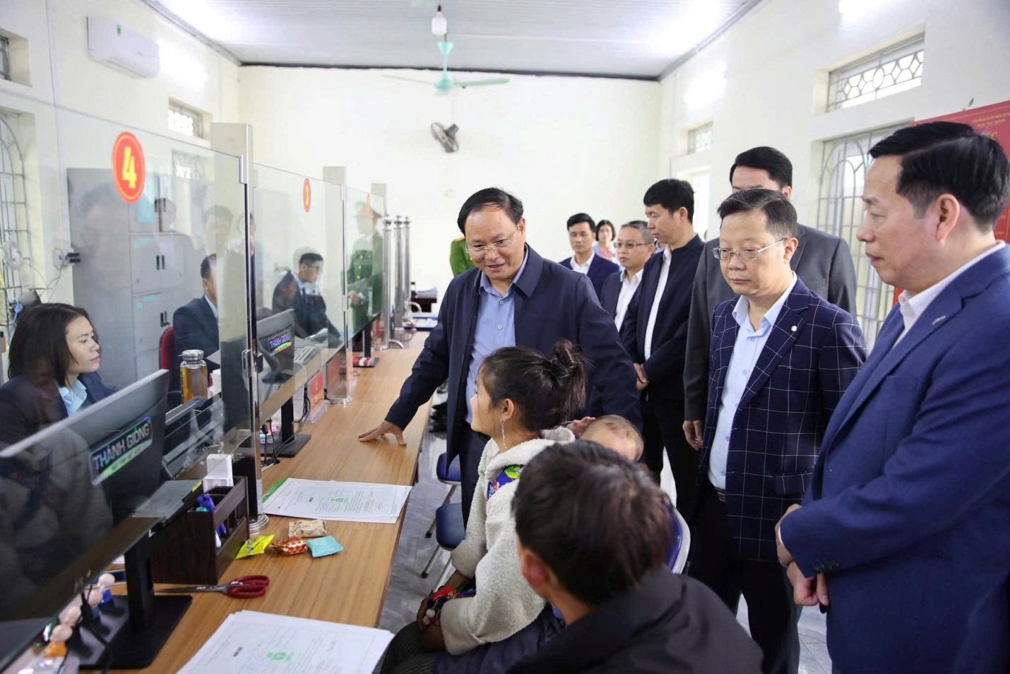 Bí thư Tỉnh uỷ Lê Minh Ngân và các đồng chí Thường trực Tỉnh uỷ thăm, động viên công chức Trung tâm Phục vụ hành chính công xã Sin Suối Hồ và người dân đến giải quyết thủ tục hành chính.