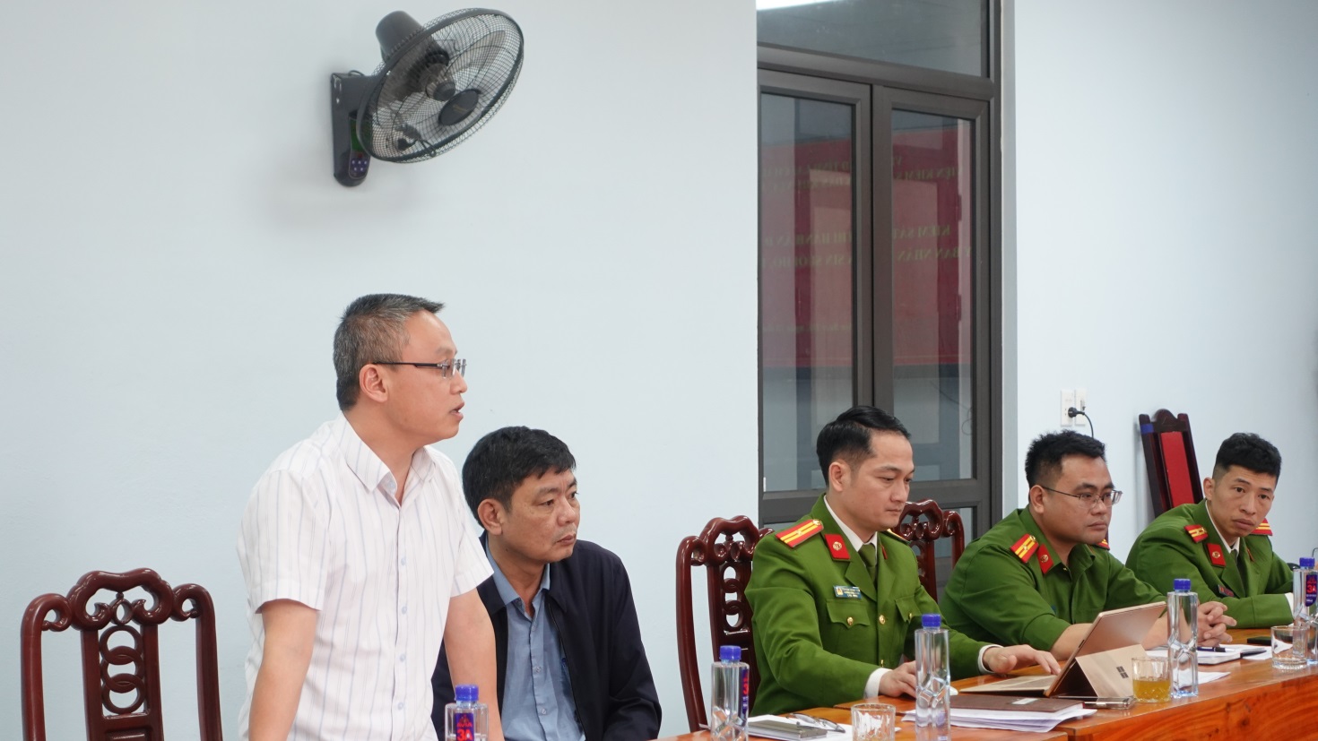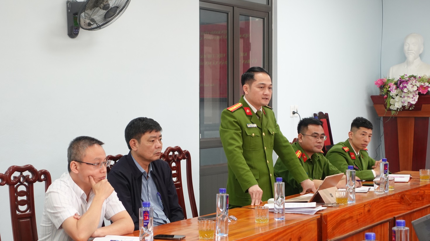 Đại diện Công an xã phát biểu giải trình một số hạn chế, tồn tại.