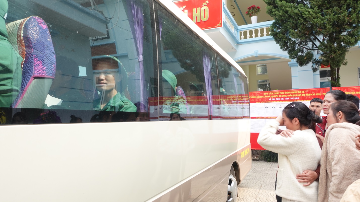 Nhân dân, người thân tiễn tân binh lên đường nhập ngũ.