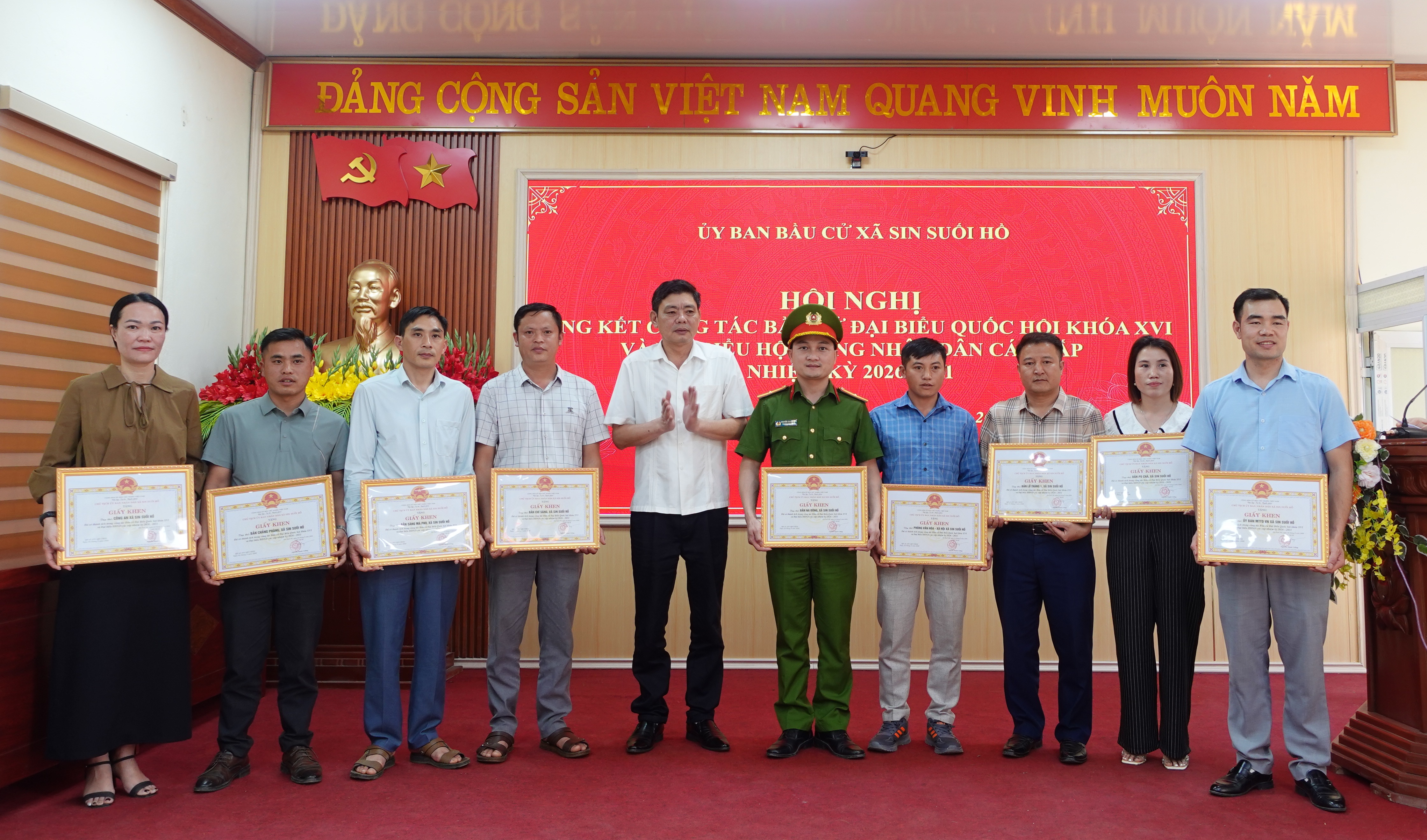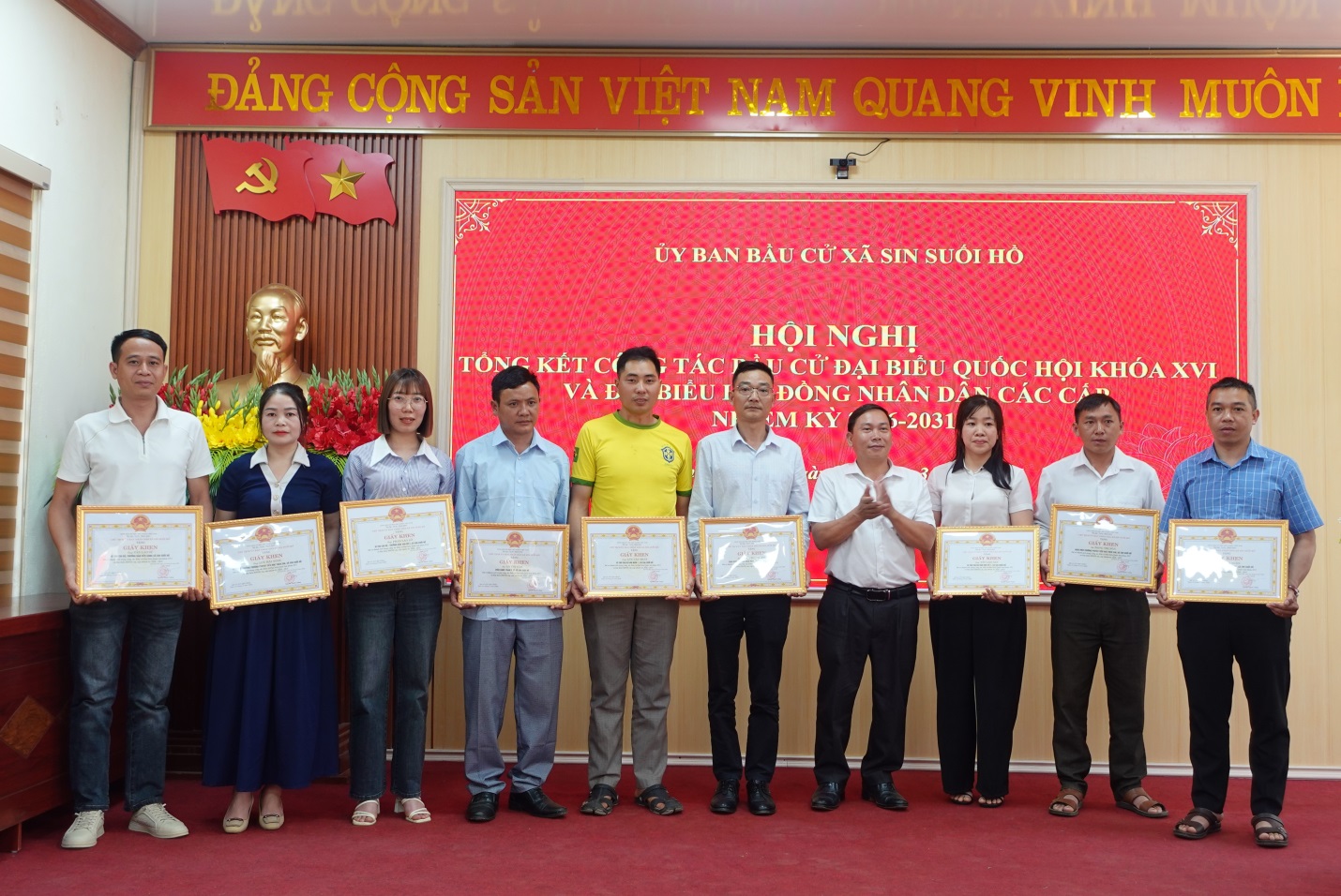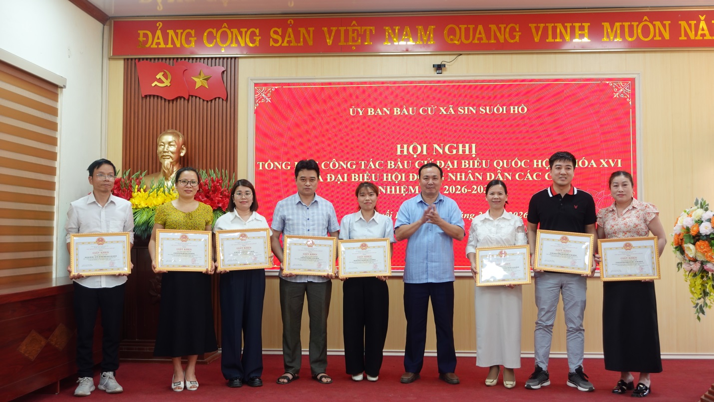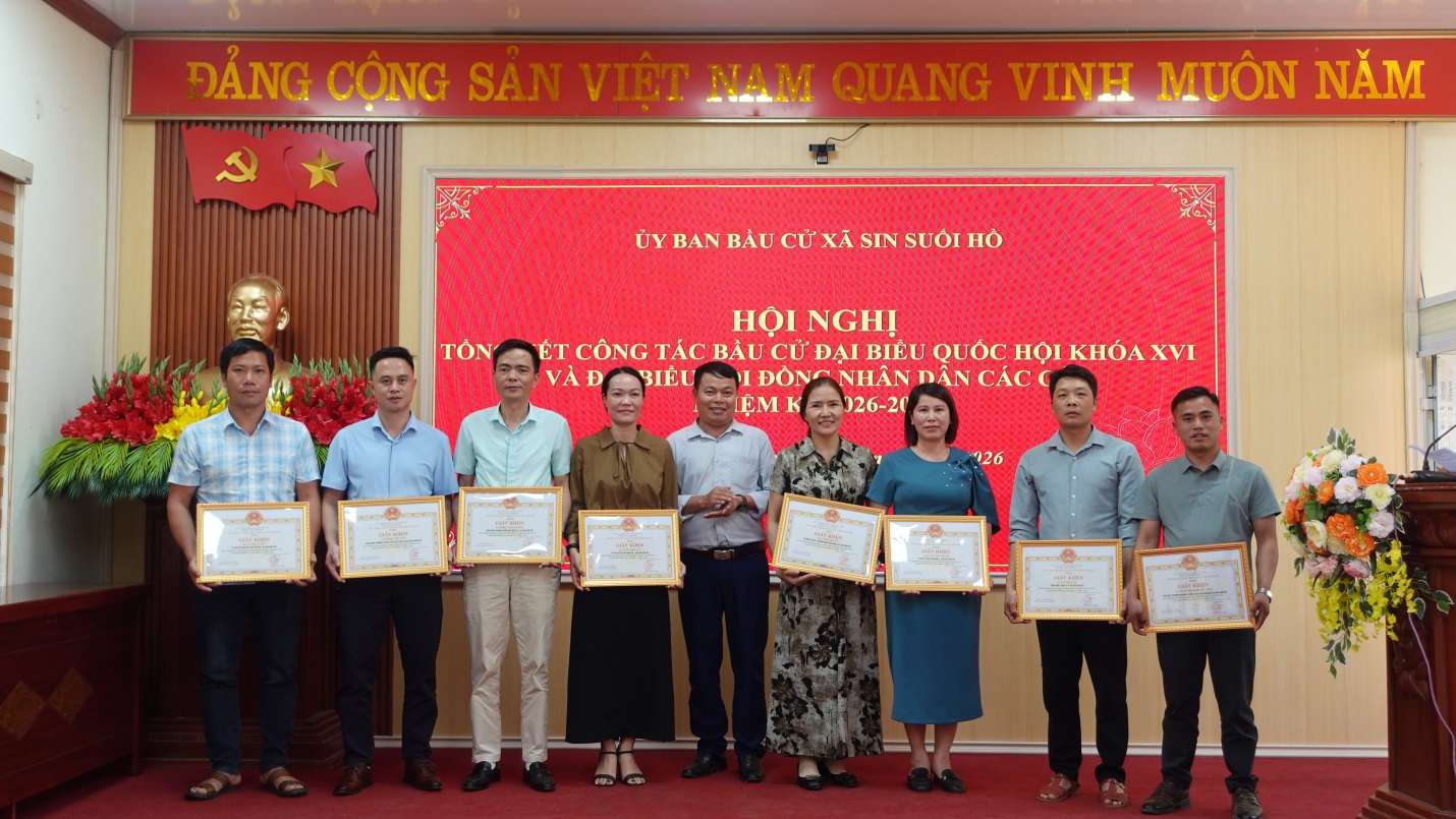 Chiều ngày 25/3, Ủy ban Bầu cử xã Sin Suối Hồ tổ chức hội nghị tổng kết công tác bầu cử đại biểu Quốc hội khóa XVI và đại biểu HĐND các cấp nhiệm kỳ 2026 – 2031. Dự và chỉ đạo hội nghị có đồng chí Trịnh Văn Đoàn – Bí thư Đảng ủy, Chủ tịch HĐND xã. Dự hội nghị có các đồng chí Thường trực Đảng ủy, HĐND, UBND, UBMTTQVN xã; thành viên Ban chỉ đạo bầu cử xã, thành viên Ủy ban Bầu cử xã; lãnh đạo các Ban bầu cử; trưởng, phó các Tiểu ban, Tổ giúp việc UBBC; tổ trưởng, thư ký Tổ bầu cử và các tập thể, cá nhân có thành tích xuất sắc trong công tác bầu cử.