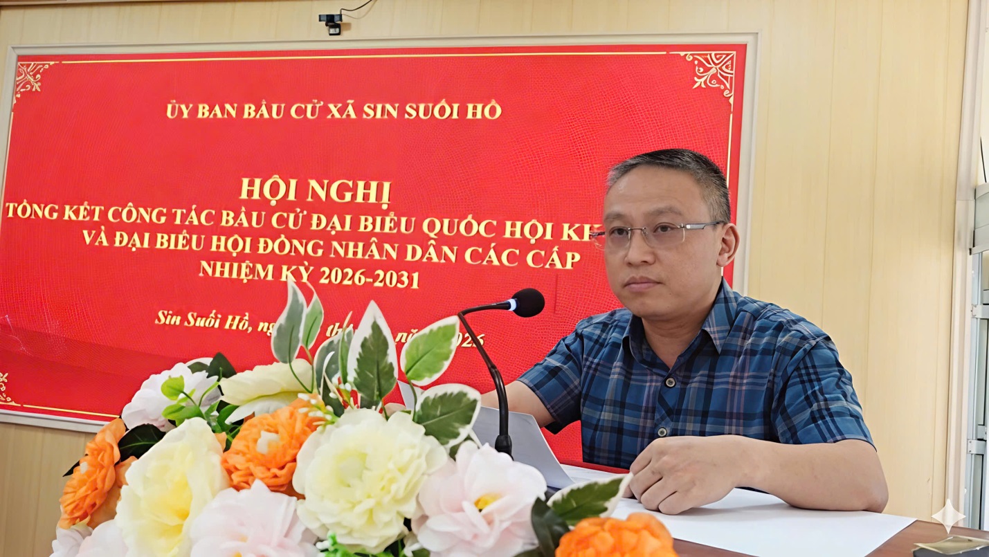 Phát biểu chỉ đạo tại hội nghị, đồng chí Trịnh Văn Đoàn – Bí thư Đảng ủy, Chủ tịch HĐND xã nhấn mạnh: Cuộc bầu cử đại biểu Quốc hội khóa XVI và đại biểu HĐND các cấp nhiệm kỳ 2026 – 2031 là nhiệm vụ chính trị quan trọng, là ngày hội của non sông, đất nước, trong đó có xã Sin Suối Hồ. Cuộc bầu cử diễn ra trên địa bàn xã đã thành công tốt đẹp với tỷ lệ cử tri đi bầu đạt 100%, cao nhất từ trước đến nay. Đã lựa chọn được những người tiêu biểu về đức, về tài, xứng đáng đại diện cho ý chí, nguyện vọng và quyền làm chủ của Nhân dân; đúng ý Đảng hợp lòng dân. Xã Sin Suối Hồ vinh dự là 1 trong 5 xã trên địa bàn tỉnh hoàn thành công tác bầu cử sớm nhất. Đồng chí Bí thư Đảng ủy xã đã gửi lời cảm ơn sâu sắc tới tất cả các đồng chí là thành viên Ban chỉ đạo, UBBC xã, các Tiểu ban, Tổ giúp việc, lãnh đạo các Tổ bầu cử tại 35 điểm bầu cử và bà con cử tri trên địa bàn xã đã hợp sức, đồng lòng, nâng cao tinh thần, trách nhiệm góp phần vào thành công của cuộc bầu cử trên địa bàn xã. Đồng thời đề nghị các cơ quan, đơn vị sớm hoàn thiện hồ sơ, kiện toàn bộ máy nhiệm kỳ 2026 – 2031 đảm bảo hoạt động hiệu năng, hiệu lực, hiệu quả; tập trung lãnh đạo, chỉ đạo thực hiện tốt nhiệm vụ phát triển kinh tế - xã hội, đảm bảo quốc phòng - an ninh, nâng cao đời sống cho Nhân dân trên địa bàn xã.